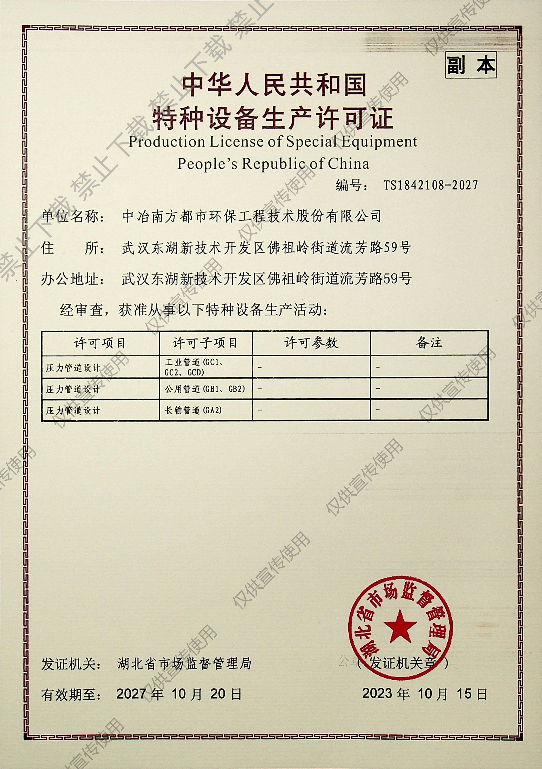 特種設(shè)備生產(chǎn)許可證